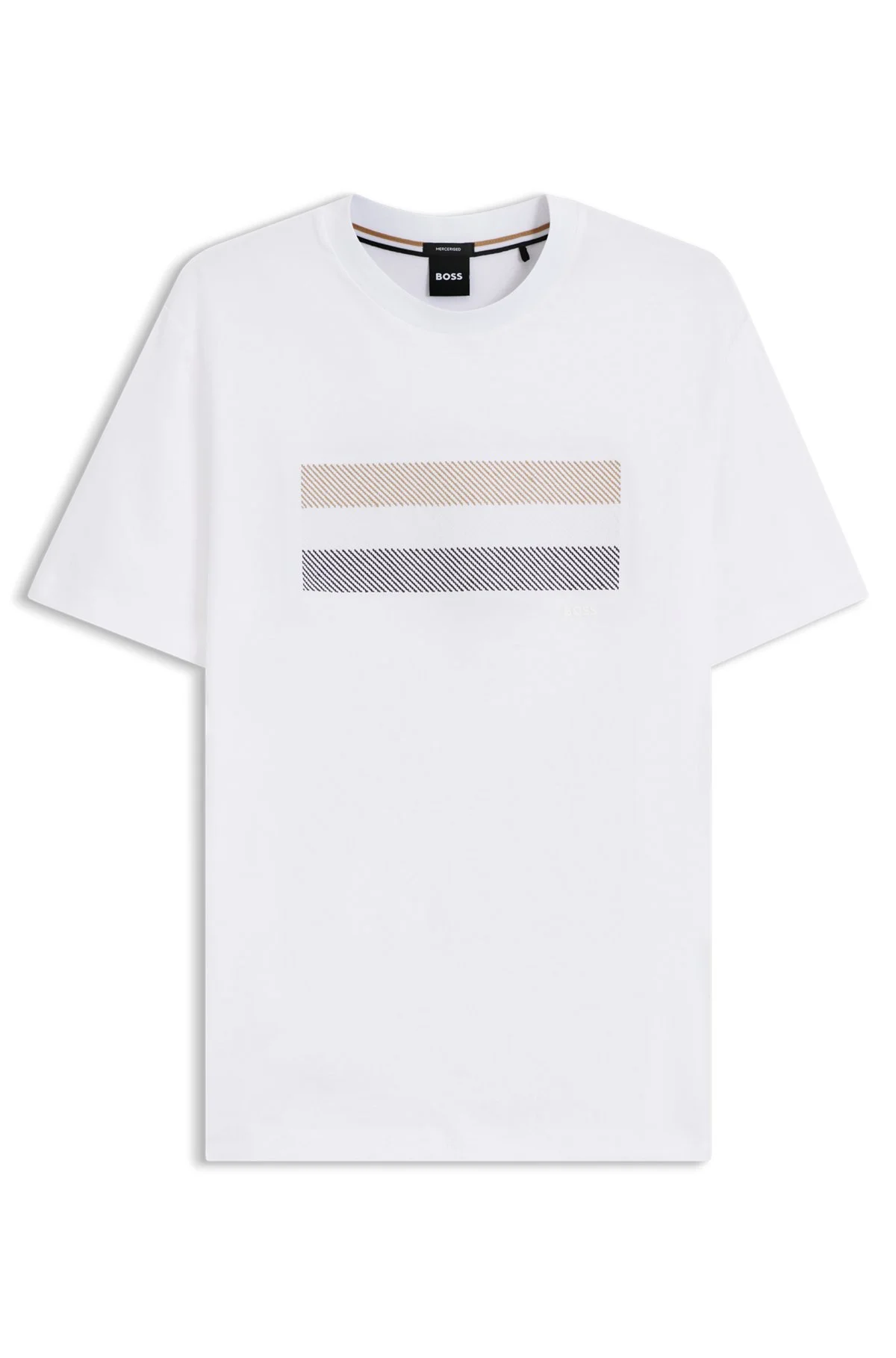 DETAILS Create effortless casual looks with the creative stripe artwork of this regular-fit BOSS Menswear T-shirt. Crafted in super-soft cotton. Regular fit Neckline: Crew neck Short sleeves C-Taut 10 - 50556354 QUALITY & CARE INSTRUCTIONS Material: 100% Cotton Machine Wash Cold Gentle Do Not Bleach Do Not Tumble Dry Do Not Dry Clean Iron Low Heat
