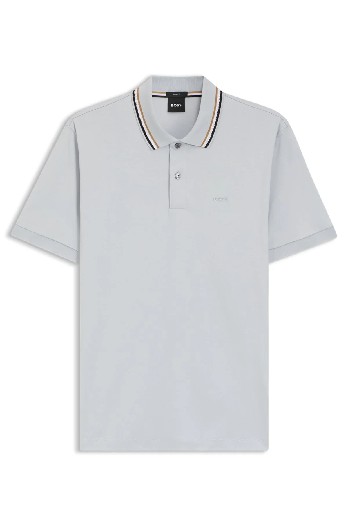 DETAILS A luxurious polo shirt cut to a defined fit, by BOSS Menswear. Featuring signature stripes at the collar, this short-sleeved polo shirt is crafted in mercerized cotton for a super-soft feel and is printed with a tonal BOSS logo at the left chest. The side seam carries a branded flag for a distinctive finish. Slim fit Neckline: Flat-knit collar Number of buttons: 2 Short sleeves No cuffs Standard length Penrose 38 - 50469360 QUALITY & CARE INSTRUCTIONS Do Not Dry Clean Iron Low Heat Do Not Bleach Machine Wash Cold Gentle Do Not Tumble Dry Material: 100% Cotton