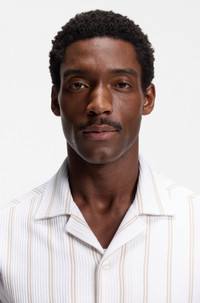 SIZE AND FIT Relaxed fit The model wears a size M and is 6'1" tall with a, 36" chest, 29" waist and 37" hips. DETAILS In summery stretch-cotton jersey with a textured vertical stripe, this BOSS Menswear shirt is effortless and easy to wear. Cut to a relaxed fit. Relaxed fit Camp collar Standard length C-LARS-CAMP-B-262 - 50561448 QUALITY & CARE INSTRUCTIONS Material: 97% Cotton, 3% Elastane Iron Low Heat Dry Clean Only Do Not Bleach Do Not Tumble Dry Machine Wash Cold Gentle