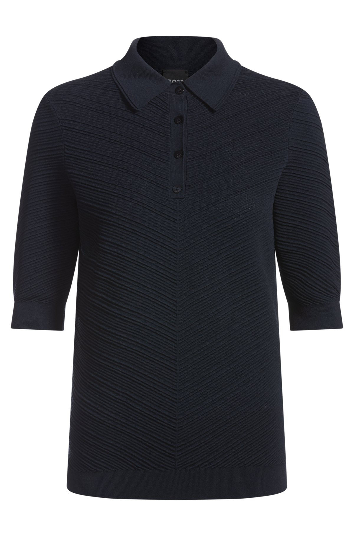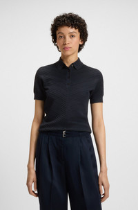 DETAILS Fointa - 50540384 Ideal for tucking into tailored trousers, this BOSS Womenswear sweater has a rich, detailed structure. Smooth trims provide modern contrast. Neckline: Polo collar Short sleeves QUALITY & CARE INSTRUCTIONS Hand Wash Only Quality: 76% Viscose, 24% Polyamid Dry Clean Only Do Not Bleach Iron Low Heat Do Not Tumble Dry