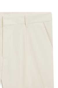 SIZE AND FIT The model wears a size 32R and is 6'1" tall with a, 37" chest, 29" waist and 35" hips. DETAILS With a slim cut and tapered leg, these BOSS Menswear trousers offer a modern silhouette. Stretch-cotton corduroy with contemporary front pleats. Tapered fit Hook and zip closure Pockets bottom front: Side slash pockets Pockets bottom back: Welt pocket Partially lined C-Perin-PL-253 - 50551574 QUALITY & CARE INSTRUCTIONS Reduced Dry Clean Do Not Wash Do Not Tumble Dry Iron Low Heat Do Not Bleach Material: 98% Cotton, 2% Elastane, pocketing: 65% Polyester, 35% Cotton