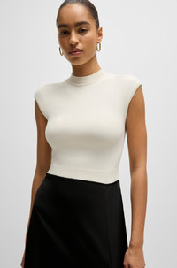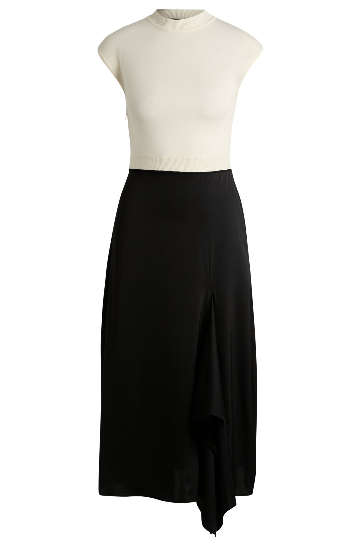 SIZE AND FIT The model wears a size S and is 6'1" tall with a, 37" chest, 29" waist and 35" hips. DETAILS Ferdola - 50528590 A distinctive dress by BOSS. Featuring a volant trim, this two-part dress is crafted in different materials at the top and skirt for a hybrid effect. Cap sleeves and a mock neckline give a contemporary finish. Neckline: Crew neck Short sleeves Fit back length: 119 cm (47 inches) QUALITY & CARE INSTRUCTIONS Reduced Dry Clean Do Not Bleach Cold, gentle machine wash; reduced spin speed. Quality: 76% Viscose, 24% Polyamid, Skirt: 100% Polyester Do Not Tumble Dry Iron Low Heat