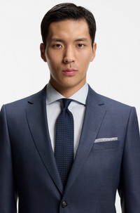 SIZE AND FIT The model wears a size 38R and is 6'1" tall with a, 36" chest, 29" waist and 36" hips. DETAILS Update your business and occasion wear with this two-piece BOSS Menswear suit. Woven with a subtle Panama structure, this suit is crafted in virgin wool blended with a touch of silk for a smooth, luxurious handfeel. The slim fit creates a cutting-edge silhouette. Slim fit Notched lapels Fastening top: Button closure Number of buttons: 2 Welt chest pockets Pockets top: Flap pockets Kissing buttons on the cuff Fully lined Hook and zip closure Pockets bottom front: Side slash pockets Pockets bottom back: Jetted pockets H-Huge-2Pcs-253 - 50557257 QUALITY & CARE INSTRUCTIONS Do Not Bleach Reduced Dry Clean Do Not Tumble Dry Iron Medium Heat Do Not Wash Material: 84% Virgin wool, 16% Silk, Lining: 100% Viscose, Sleeve lining: 100% Viscose, knee lining: 100% Viscose