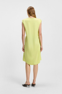 DETAILS Davolina - 50540628 Create effortless looks with this BOSS Womenswear dress. Featuring open-structured trims at the shoulders, this V-neck design is crafted in stretch fabric with a soft drape. The buckled belt is integrated to deliver definition at the waist. Relaxed fit Neckline: V-neck Fastening top: Belted closure Sleeveless Fit back length: 100 cm (39 inches) QUALITY & CARE INSTRUCTIONS Do Not Wash Do Not Tumble Dry Reduced Dry Clean Do Not Bleach Quality: 96% Viscose, 4% Elastane Iron Low Heat