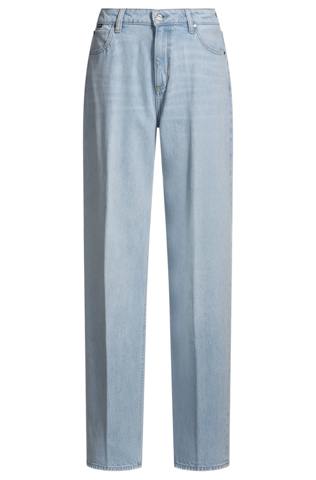 SIZE AND FIT The model wears a size 28/32 and is 5'10" tall with a, 31" chest, 24" waist and 35" hips. DETAILS CROSSROAD SUPER BF - 50538631 Cut to a wide-leg fit for a modern silhouette, these BOSS Womenswear jeans are instantly flattering. Super-soft rigid denim in a versatile blue. Button and zip closure Pockets bottom front: Side pockets Pockets bottom back: Patch pocket QUALITY & CARE INSTRUCTIONS Machine Wash Cold Gentle Quality: 64% Cotton, 36% Lyocell, pocketing: 100% Cotton Iron Medium Heat Do Not Tumble Dry Do Not Bleach Do Not Dry Clean
