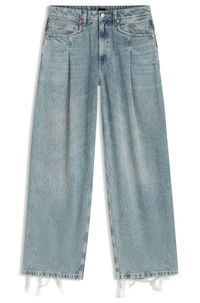 DETAILS C_SLOUCHY PLEATED MR - 50542435 With their wide leg and pleats, these BOSS Womenswear jeans deliver a flattering silhouette. Green-cast rigid denim with a vintage blue wash. Distressed hems. wide leg fit Mid rise Button and zip closure Pockets bottom front: Side pockets Wide leg Pockets bottom back: Patch pocket Open length QUALITY & CARE INSTRUCTIONS Do Not Tumble Dry Machine Wash Cold Gentle Quality: 100% Cotton, pocketing: 70% Polyester, 30% Cotton Do Not Bleach Iron Medium Heat Do Not Dry Clean
