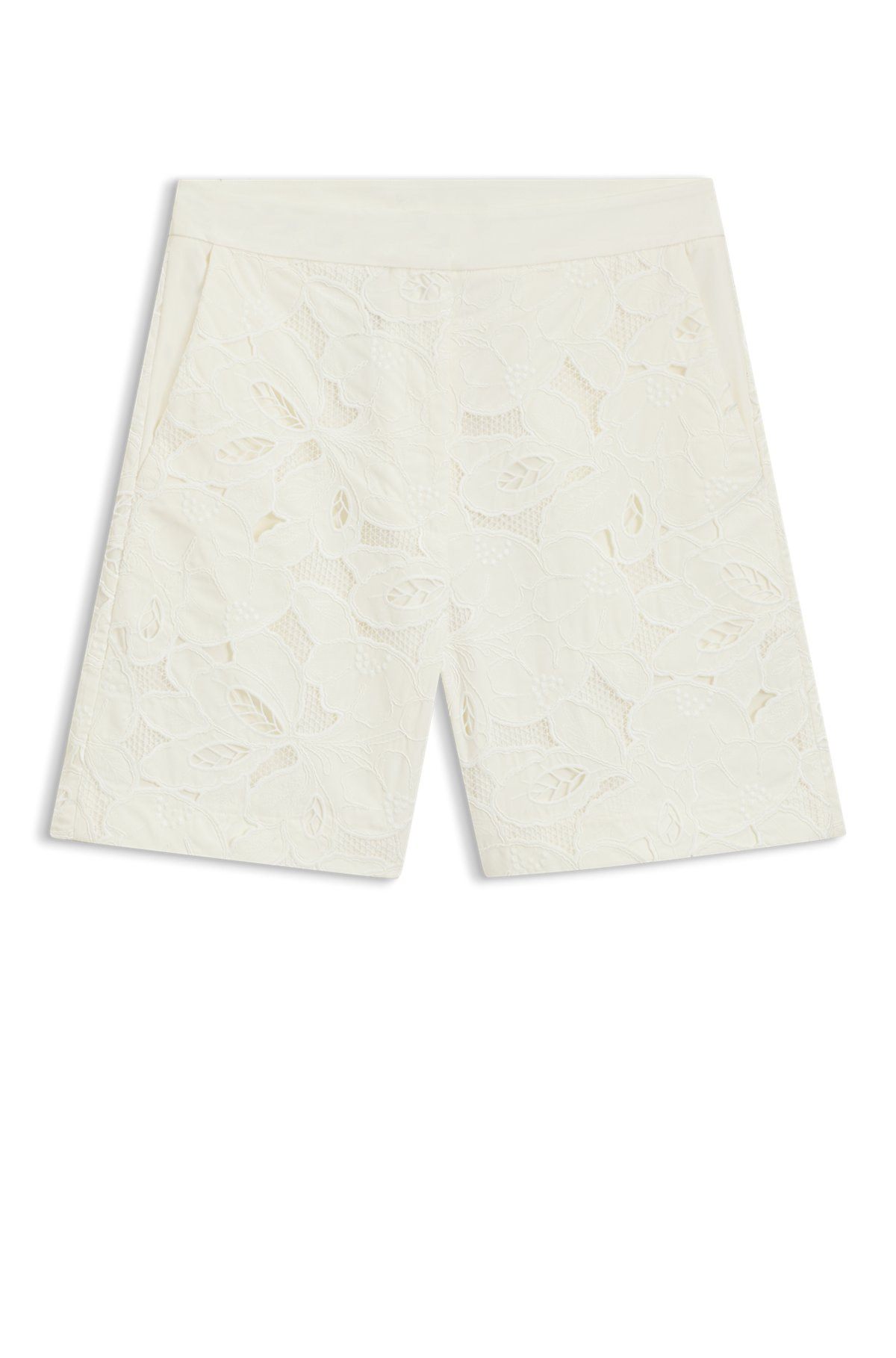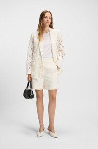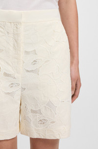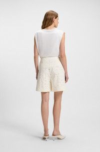 DETAILS Tonara - 50548572 Crafted in a soft bamboo blend, these BOSS Womenswear shorts are a fresh update for your wardrobe. Embroidered with broderie anglaise detailing. Wide leg QUALITY & CARE INSTRUCTIONS Quality: 70% Polyester, 29% Viscose (Bamboo - Cellulose), 1% Polyamid, Lining: 54% Viscose (Bamboo - Cellulose), 46% Polyester Do Not Tumble Dry Dry Clean Only Iron Low Heat Do Not Bleach Machine Wash Cold Gentle