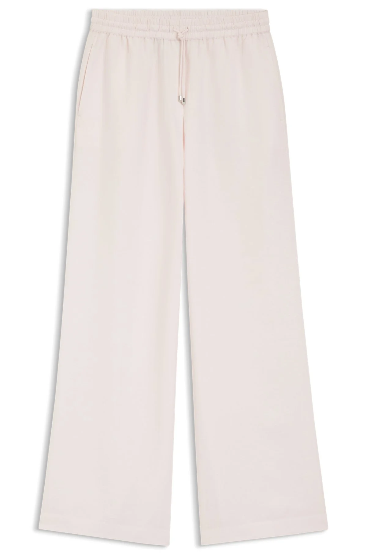 SIZE AND FIT Flare Fit The model wears a size 4 and is 5'9" tall with a, 30" chest, 23" waist and 35" hips. DETAILS Easy to style up or down, these BOSS Womenswear trousers are blended with summery linen. Wide-leg fit with a comfy elasticated waistband. wide leg fit Regular rise Elastic Waistband Wide leg Pockets bottom front: Side pockets Partially lined Tavati2_TI - 50562213 QUALITY & CARE INSTRUCTIONS Material: 73% Lyocell, 27% Linen, pocketing: 100% Viscose Do Not Bleach Dry Clean Only Do Not Tumble Dry Hand Wash Only Iron Low Heat