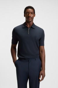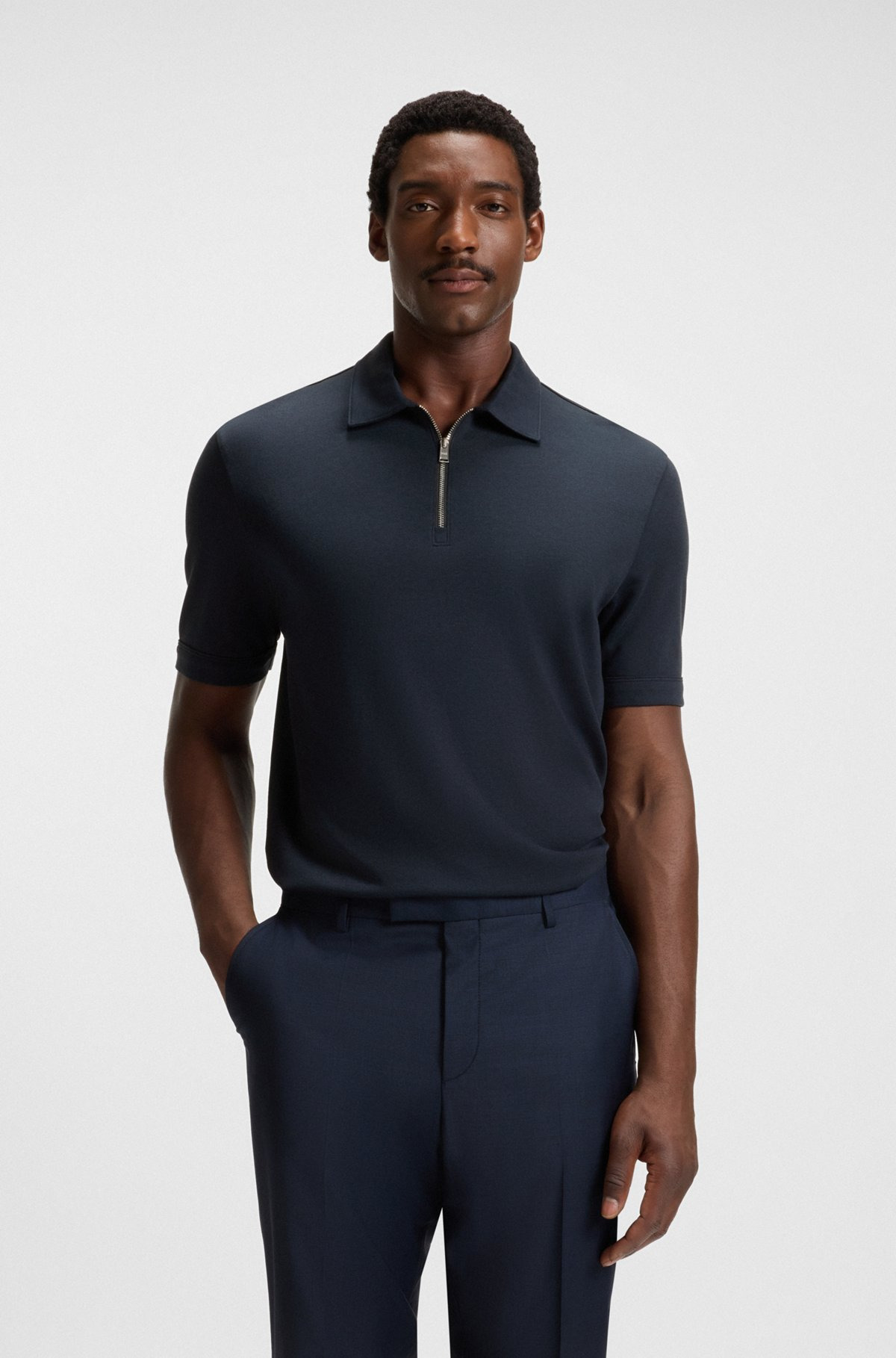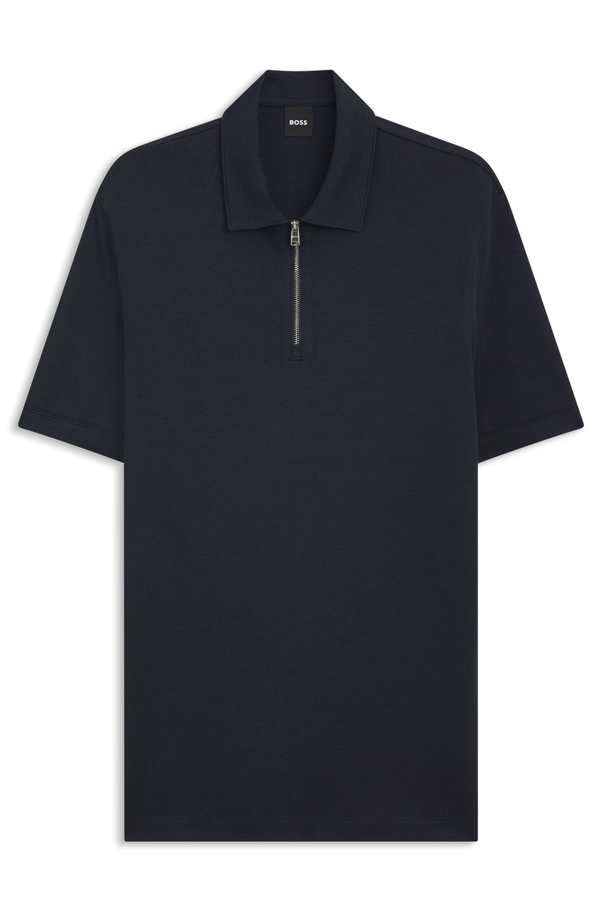 SIZE AND FIT The model wears a size M and is 6'1" tall with a, 36" chest, 29" waist and 36" hips. DETAILS H-Paras 57 - 50544091 Topped with a zip placket, this straight-fit BOSS Menswear polo shirt is a casual classic. Breathable pique weave. Blended with soft cotton. Regular fit Neckline: Zip neck Short sleeves Standard length QUALITY & CARE INSTRUCTIONS Cold, gentle machine wash; reduced spin speed. Do Not Tumble Dry Quality: 67% Lyocell, 33% Cotton Iron Low Heat Do Not Bleach Do Not Dry Clean