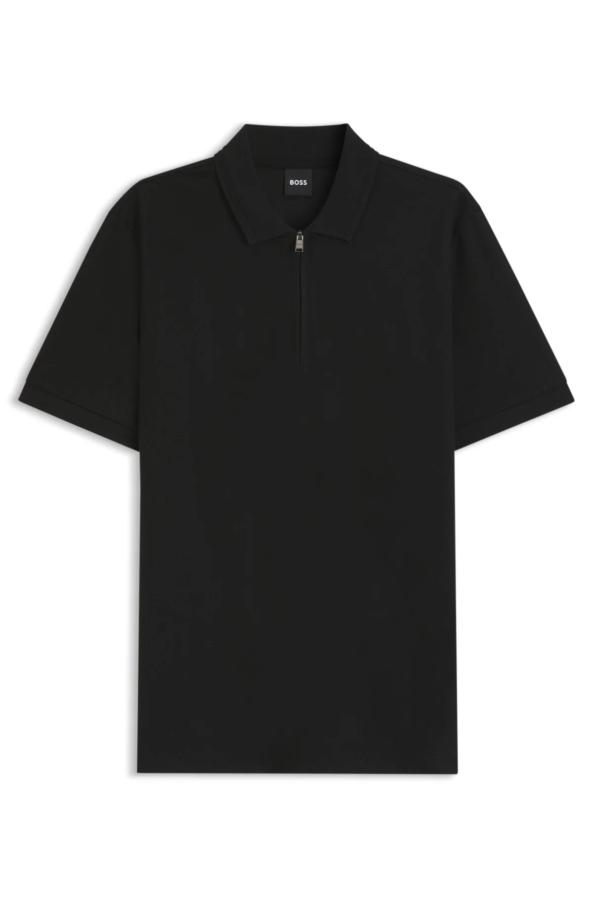 SIZE AND FIT The model wears a size M and is 6'1" tall with a, 33" chest, 28" waist and 34" hips. DETAILS With its textured collar edge and clean zip, this BOSS Menswear polo shirt is brimming with detail. Straight fit. Mercerised cotton Regular fit Neckline: Polo collar Fastening top: Zip closure Short sleeves Flat-knit cuffs Standard length H-Paras 70 - 50554614 QUALITY & CARE INSTRUCTIONS Machine Wash Cold Gentle Do Not Bleach Do Not Tumble Dry Iron Low Heat Material: 60% Cotton, 40% Lyocell Reduced Dry Clean
