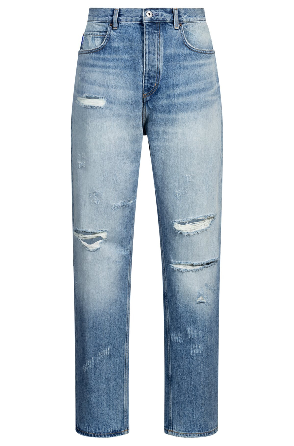 DETAILS Nate - 50534527 With characterful whiskering and heavy distressing, these mid-blue HUGO Menswear jeans are a casual essential. Cut to a baggy fit with a wide leg. baggy fit Mid rise Button closure Pockets bottom front: Side pockets Wide leg Pockets bottom back: Patch pocket Standard length Fit foot width: 44,0 cm (17.3 inches) QUALITY & CARE INSTRUCTIONS Do Not Bleach Do Not Tumble Dry Iron Medium Heat Do Not Dry Clean Quality: 100% Cotton, pocketing: 100% Cotton Machine Wash Cold Gentle