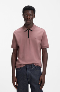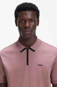 DETAILS A sporty polo shirt by HUGO Menswear, cut to a regular fit in cotton pique with a zipped placket and contrast logo. Regular fit Neckline: Flat-knit collar Fastening top: Zip closure Short sleeves Ribbed cuffs Dalomino - 50511721 QUALITY & CARE INSTRUCTIONS Iron Low Heat Do Not Bleach Machine Wash Cold Gentle Do Not Tumble Dry Material: 100% Cotton Do Not Dry Clean