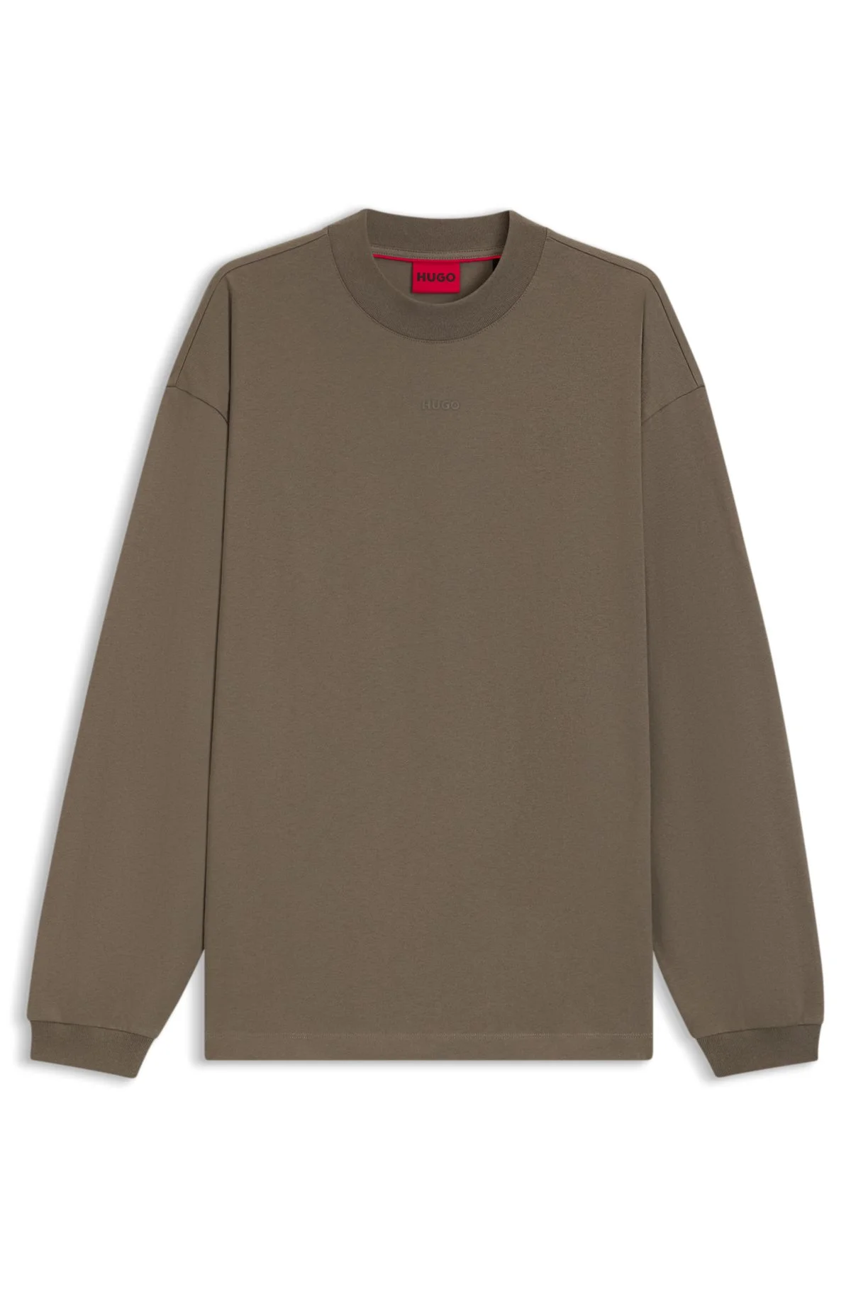 DETAILS A long-sleeved T-shirt in heavyweight cotton jersey by HUGO Menswear. This relaxed-fit top is printed with a contrast logo on the chest. Relaxed fit Neckline: Crew neck Long sleeves Standard length Daposo - 50511029 QUALITY & CARE INSTRUCTIONS Do Not Tumble Dry Iron Low Heat Do Not Dry Clean Machine Wash Cold Gentle Do Not Bleach Quality: 100% Cotton