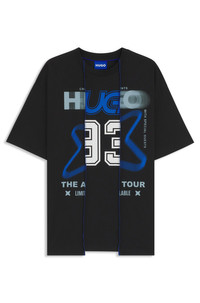 SIZE AND FIT The model wears a size L and is 6'2" tall with a, 35" chest, 27" waist and 35" hips. DETAILS Nesitis - 50544182 Make an individual statement with the mixed artwork and layered effect of this HUGO Menswear T-shirt. Crafted in soft cotton. Comfortable loose fit. loose fit Neckline: Crew neck Short sleeves QUALITY & CARE INSTRUCTIONS Do Not Tumble Dry Iron Low Heat Do Not Bleach Quality: 100% Cotton Do Not Dry Clean Machine Wash Cold Gentle