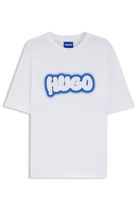 SIZE AND FIT The model wears a size M and is 6'0" tall with a, 33" chest, 27" waist and 35" hips. DETAILS Freshen up casual looks with the modern logo artwork of this HUGO Menswear T-shirt. Cut to a straight fit in soft cotton jersey. Regular fit Neckline: Crew neck Short sleeves Standard length Nulibax - 50549155 QUALITY & CARE INSTRUCTIONS Machine Wash Cold Gentle Do Not Bleach Do Not Dry Clean Iron Low Heat Quality: 100% Cotton Do Not Tumble Dry