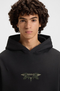 SIZE AND FIT The model wears a size M and is 6'0" tall with a, 35" chest, 27" waist and 35" hips. DETAILS Dimstone - 50542558 Add impact to casual looks with the intricately embroidered artwork of this HUGO Menswear hoodie. Cut to a roomy fit in breathable cotton terry. loose fit Neckline: Hooded Pockets top: Kangaroo pocket QUALITY & CARE INSTRUCTIONS Do Not Tumble Dry Machine Wash Cold Gentle Quality: 100% Cotton Iron Low Heat Do Not Bleach Do Not Dry Clean