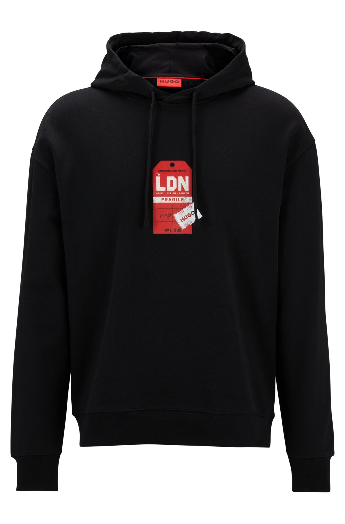 COTTON-TERRY HOODIE WITH TRAVEL-TAG ARTWORK