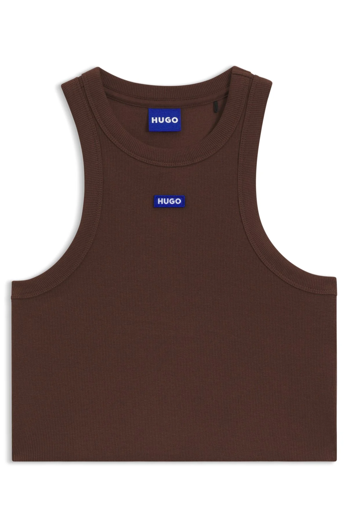 SIZE AND FIT The model wears a size S and is 5'8" tall with a, 31" chest, 23" waist and 34" hips. DETAILS A modern essential, this slim-fit HUGO Womenswear tank top features a cropped, raw hemline. Blue logo label. Stretch cotton with a ribbed structure. Slim fit Neckline: Crew neck Sleeveless Baby Tank_B - 50511450 QUALITY & CARE INSTRUCTIONS Machine Wash Cold Gentle Do Not Bleach Material: 96% Cotton, 4% Elastane Do Not Tumble Dry Iron Low Heat Reduced Dry Clean