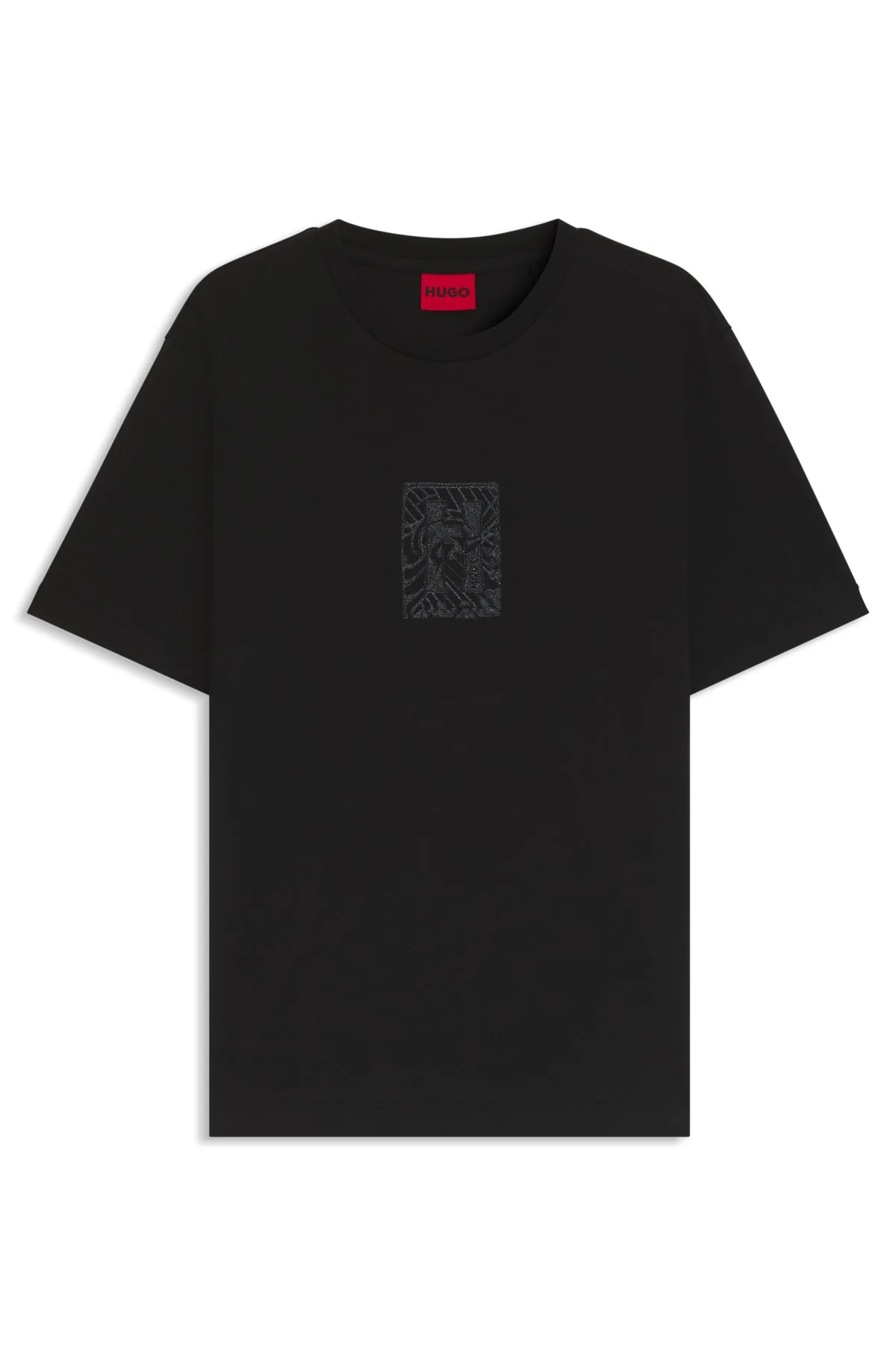 DETAILS In a casual regular fit, this HUGO Menswear T-shirt injects modern edge to your look with its intricately embroidered artwork. Crafted in breathable cotton. Regular fit Neckline: Crew neck Short sleeves Standard length Dadso - 50546804 QUALITY & CARE INSTRUCTIONS Do Not Bleach Material: 100% Cotton Do Not Tumble Dry Machine Wash Cold Gentle Iron Low Heat Reduced Dry Clean