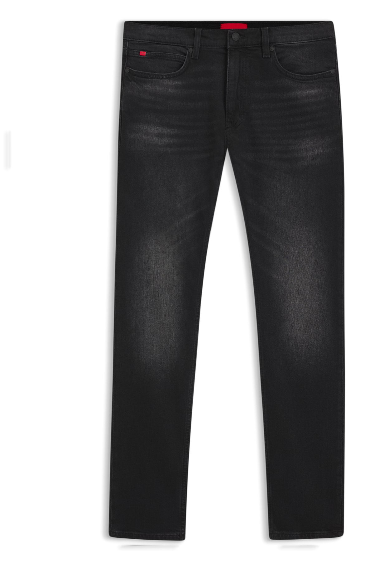 SIZE AND FIT The model wears a size 32/32 and is 6'2" tall with a, 36" chest, 28" waist and 37" hips. DETAILS HUGO 734 - 50524229 Modern jeans cut to a skinny fit by HUGO Menswear. This mid-rise pair is crafted in stretch denim with a black-black tone and light wash. Extra-slim fit Mid rise Button and zip closure Pockets bottom front: Side pockets Skinny leg Pockets bottom back: Patch pocket Standard length Fit foot width: 34,0 cm (13.4 inches) QUALITY & CARE INSTRUCTIONS Iron Medium Heat Do Not Tumble Dry Do Not Bleach Machine Wash Cold Gentle Quality: 99% Cotton (5% recycled), 1% Elastane, pocketing: 100% Cotton Do Not Dry Clean