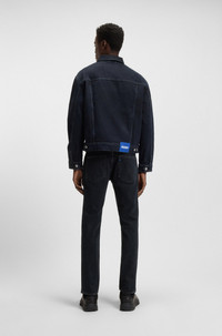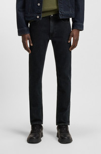 SIZE AND FIT The model wears a size 32/32 and is 6'2" tall with a, 35" chest, 27" waist and 35" hips. DETAILS Zane - 50541548 With a black wash and dark-blue sheen, these HUGO Menswear jeans are a solid casual building block. Slim-fit jeans in stretch denim Extra-slim fit Mid rise Button and zip closure Pockets bottom front: Side pockets Skinny leg Pockets bottom back: Patch pocket Standard length Fit foot width: 34,0 cm (13.4 inches) QUALITY & CARE INSTRUCTIONS Do Not Bleach Do Not Dry Clean Machine Wash Cold Gentle Iron Medium Heat Do Not Tumble Dry Quality: 99% Cotton (20% recycled), 1% Elastane, pocketing: 100% Cotton