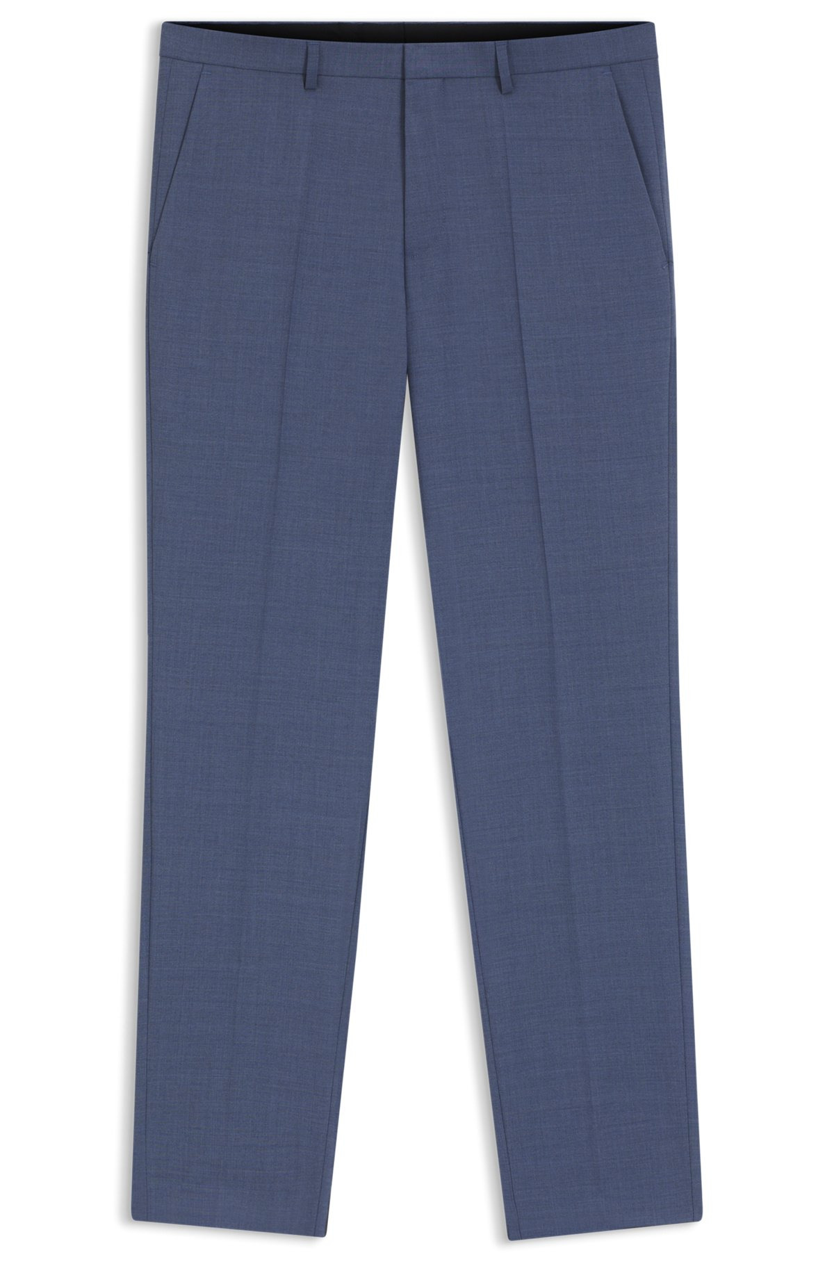 DETAILS Hesten253X - 50544734 In textured dobby blended with wool, these HUGO Menswear trousers have generous stretch for adaptable comfort. Modern super-slim fit. Extra-slim fit Fit foot width: 36,0 cm (14.2 inches) QUALITY & CARE INSTRUCTIONS Reduced Dry Clean Do Not Bleach Do Not Tumble Dry Quality: 54% Polyester, 44% Virgin wool, 2% Elastane, pocketing: 65% Polyester, 35% Cotton, knee lining: 100% Viscose Do Not Wash Iron Low Heat