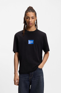 DETAILS Create casual looks with edge in this HUGO Menswear T-shirt. Cut to a regular fit in soft cotton with a high-density logo print. Regular fit Neckline: Crew neck Short sleeves Standard length Nayonix - 50554382 QUALITY & CARE INSTRUCTIONS Iron Low Heat Do Not Bleach Machine Wash Cold Gentle Do Not Tumble Dry Material: 100% Cotton Do Not Dry Clean