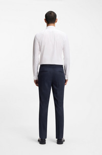 SIZE AND FIT The model wears a size 32R and is 6'2" tall with a, 34" chest, 29" waist and 35" hips. DETAILS Combining a slim fit with front pleats and a drawcord waist, these HUGO Menswear trousers pair with the matching jacket. Melange stretch flannel with wool. Slim fit Fit foot width: 36,0 cm (14.2 inches) Getlin251F3 - 50547312 QUALITY & CARE INSTRUCTIONS Material: 51% Polyester, 24% Viscose, 22% Wool, 3% Elastane, pocketing: 65% Polyester, 35% Cotton Iron Low Heat Do Not Bleach Do Not Wash Do Not Tumble Dry Reduced Dry Clean