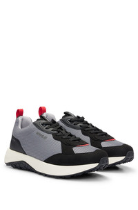 DETAILS Kane_Runn_mfme - 50517271 Running-style trainers by HUGO, designed in a mix of materials including honeycomb mesh with branding throughout. Laces Partially lined Packaging: Box QUALITY & CARE INSTRUCTIONS Upper material: 100% Polyester, Lining: 100% Polyester, 60% Polyester, 40% Polyurethane, Sole: 80% Ethylene vinyl acetate, 20% Rubber, Facing: 100% Polyurethane, 60% Polyester, 40% Polyurethane, Innersole: 100% Polyester