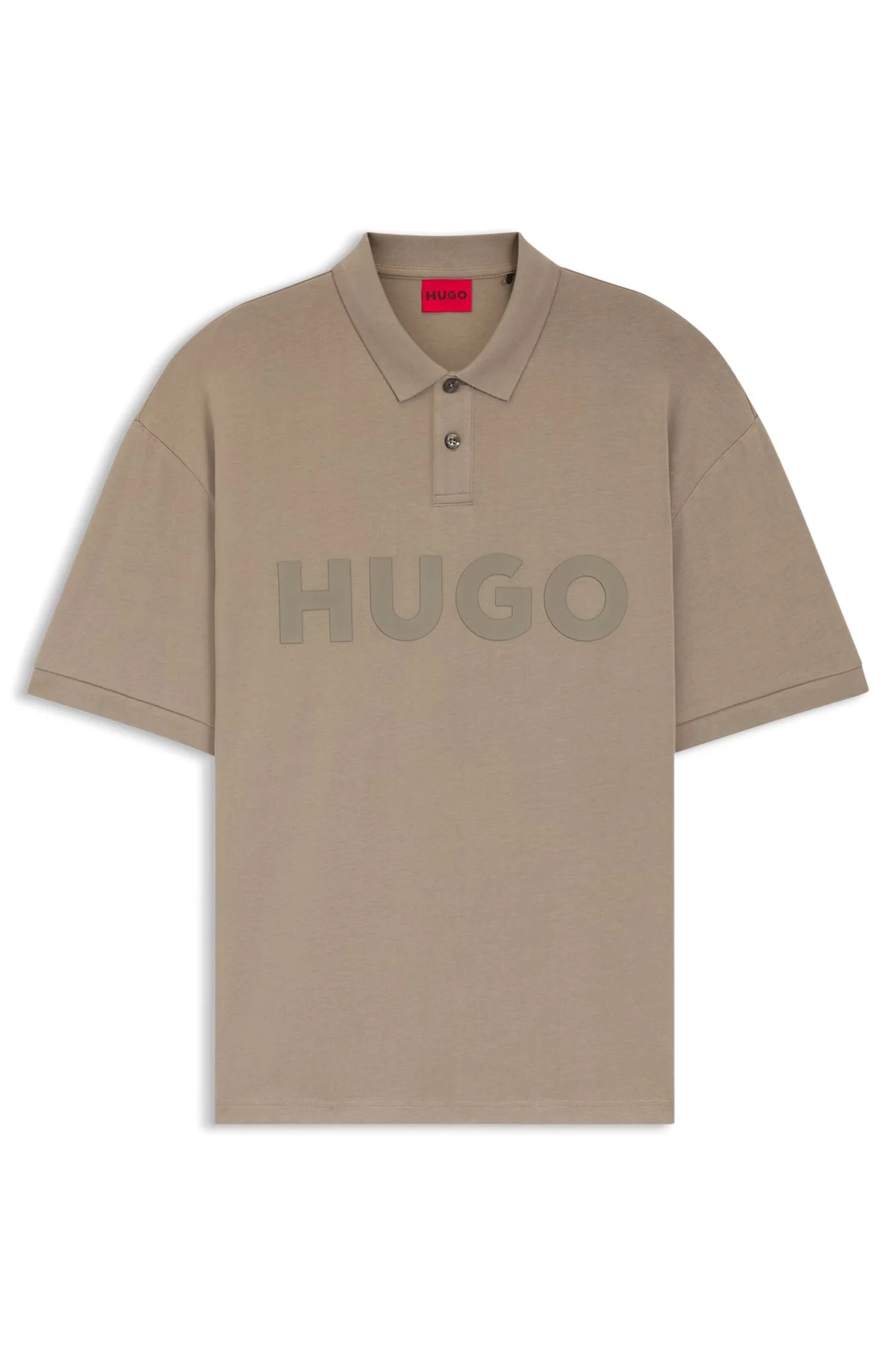 SIZE AND FIT Oversize fit The model wears a size M and is 6'0" tall with a, 35" chest, 29" waist and 33" hips. DETAILS Cut to a roomy fit for modern edge, this HUGO Menswear polo shirt features a large tonal logo print. Breathable cotton jersey. Side slits. Oversized fit Number of buttons: 2 Short sleeves Ribbed cuffs Doniee - 50535301 QUALITY & CARE INSTRUCTIONS Iron Low Heat Material: 100% Cotton Do Not Bleach Do Not Tumble Dry Do Not Dry Clean Machine Wash Cold Gentle