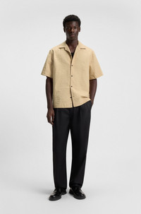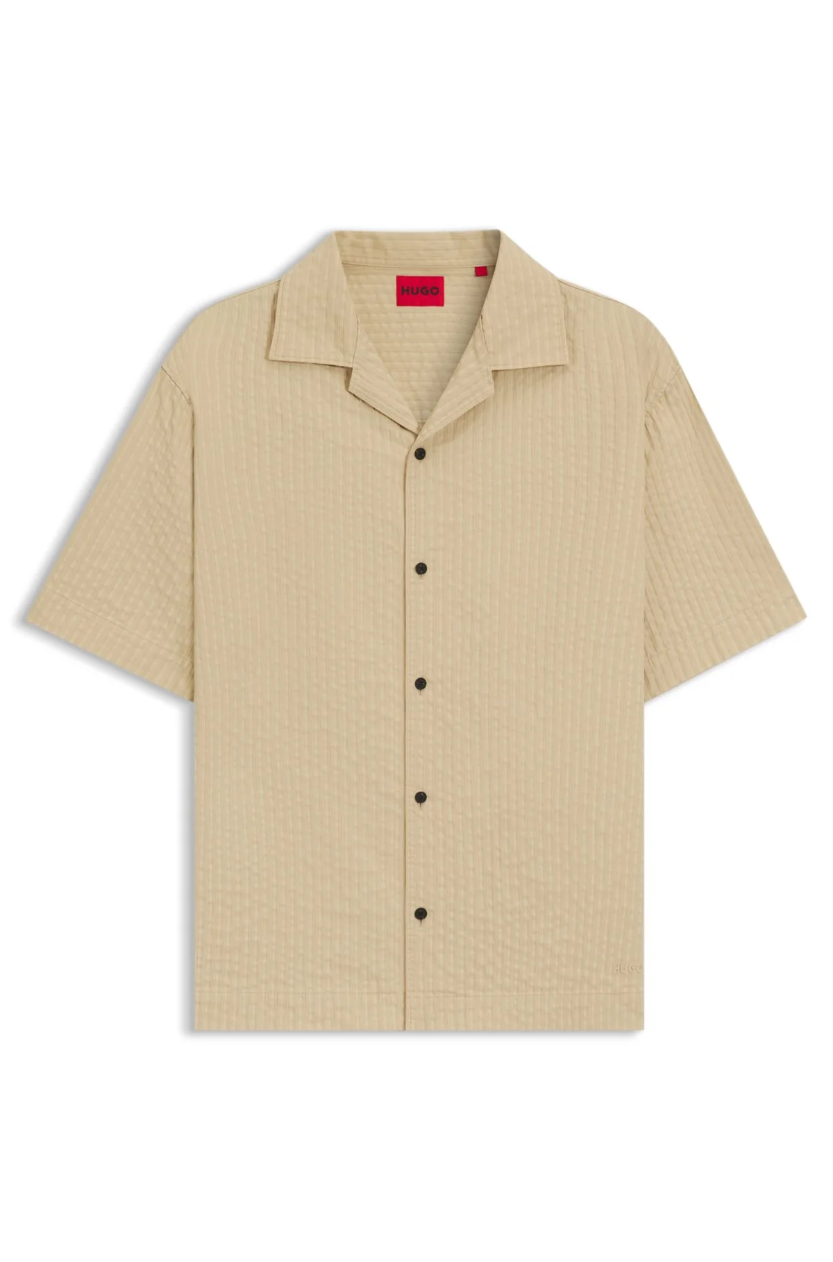 SIZE AND FIT The model wears a size M and is 6'1" tall with a, 32" chest, 27" waist and 33" hips. DETAILS Espino - 50540137 With its casual fit and breathable seersucker fabric, this striped HUGO Menswear shirt is ideal for the summer. Crafted in cotton for a fresh feel. Oversized fit Reverse lapels Short length Fit back length: 72 cm (28 inches) QUALITY & CARE INSTRUCTIONS Machine Wash Cold Gentle Do Not Tumble Dry Iron Low Heat Quality: 100% Cotton Do Not Bleach Reduced Dry Clean