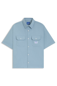 SIZE AND FIT The model wears a size M and is 6'2" tall with a, 35" chest, 27" waist and 35" hips. DETAILS Ekyno - 50517871 Giving workwear vibes, this short-sleeved shirt by HUGO Menswear is cut to an oversize fit in cotton twill. Patch pockets Woven logo badge. Oversized fit Kentkragen Flap chest pockets Short length Fit back length: 72 cm (28 inches) QUALITY & CARE INSTRUCTIONS Do Not Tumble Dry Do Not Dry Clean Machine Wash Cold Do Not Bleach Iron Low Heat Quality: 100% Cotton