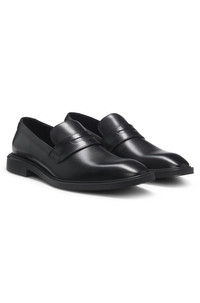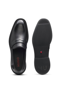 DETAILS With debossed branding and a classic penny trim, these HUGO Menswear loafers are a modern everyday choice. Crafted in rich leather. Slightly squared toe. Fastening top: Slip-on Fully lined Sole: Other material Packaging: Box Gryff_loaf_ltpl - 50548435 QUALITY & CARE INSTRUCTIONS Upper material: 100% Cow leather, Lining: 50% Polyurethane, 95% Polyester, 50% Polyester, 5% Polyurethane, Sole: 100% Thermoplastic polyurethane , Innersole: 100% Polyurethane