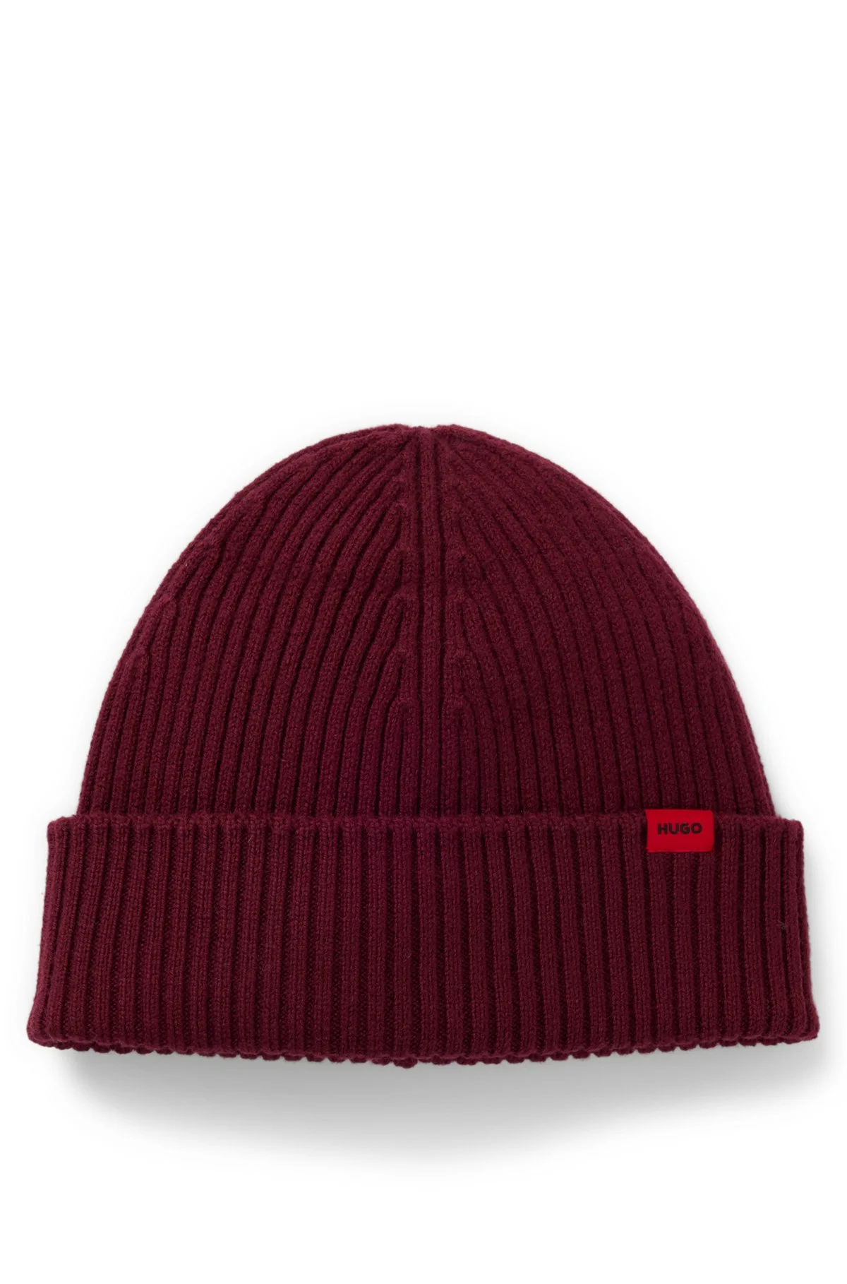 RED-LOGO BEANIE HAT IN VIRGIN WOOL