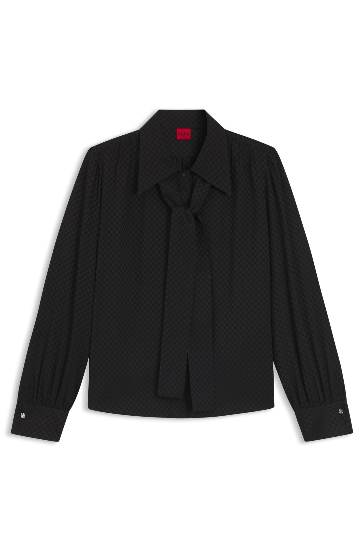 REGULAR-FIT BLOUSE IN CHECKERBOARD JACQUARD WITH TIE NECKLINE