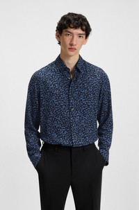 DETAILS Emero - 50545358 Liven up any look with the abstract print of this HUGO Menswear shirt. Cut to a relaxed fit with a soft drape. Relaxed fit Kent collar Barrel cuffs Standard length Fit back length: 76 cm (30 inches) QUALITY & CARE INSTRUCTIONS Do Not Dry Clean Do Not Tumble Dry Machine Wash Cold Quality: 100% Viscose Do Not Bleach Iron Low Heat