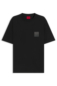 SIZE AND FIT The model wears a size M and is 6'2" tall with a, 35" chest, 27" waist and 35" hips. DETAILS Dusplito - 50542816 In heavyweight yet breathable cotton jersey, this HUGO Menswear T-shirt is printed front and back with a creative split HUGO logo. Laid-back fit. Relaxed fit Neckline: Crew neck Short sleeves QUALITY & CARE INSTRUCTIONS Do Not Tumble Dry Do Not Bleach Do Not Dry Clean Iron Low Heat Machine Wash Cold Gentle Quality: 100% Cotton