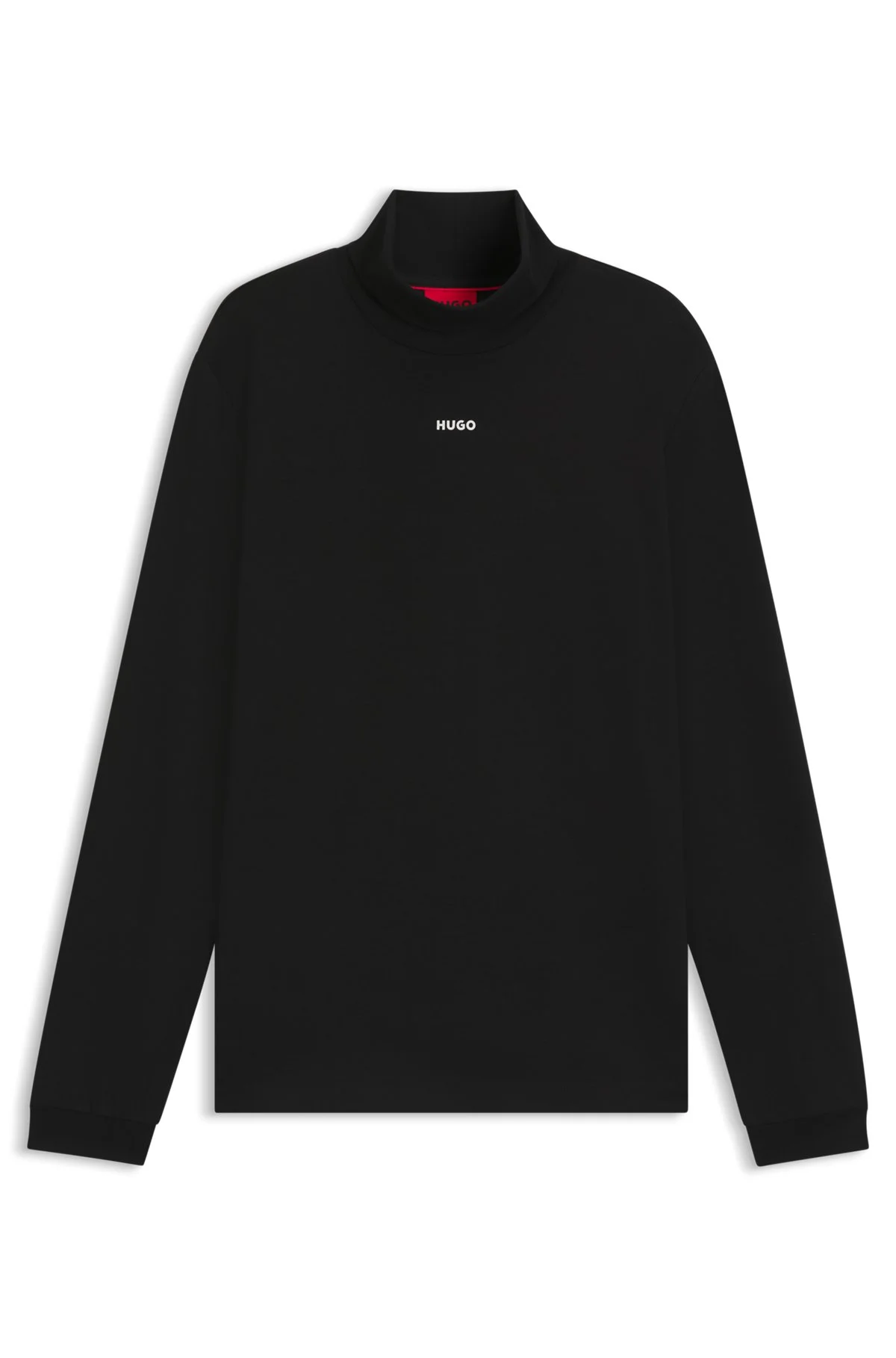 SIZE AND FIT The model wears a size M and is 6'2" tall with a, 35" chest, 28" waist and 35" hips. DETAILS Whether you style it solo or layer it with tailoring, this regular HUGO Menswear rollneck T-shirt will provide style with breathable comfort. Cotton jersey. Regular fit Neckline: Turtleneck Long sleeves Daporollo - 50547372 QUALITY & CARE INSTRUCTIONS Do Not Bleach Do Not Dry Clean Material: 100% Cotton Do Not Tumble Dry Machine Wash Cold Gentle Iron Low Heat