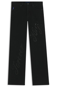 SIZE AND FIT The model wears a size 27/32 and is 5'10" tall with a, 32" chest, 24" waist and 35" hips. DETAILS With a logo slogan in jet hematite rhinestones, these bootcut HUGO Womenswear jeans have retro appeal. Slim-fit jeans in black stretch denim Slim fit Low rise Button and zip closure Pockets bottom front: Ticket pocket Boot leg Pockets bottom back: Patch pocket Extra long length Gamera_B - 50546333 QUALITY & CARE INSTRUCTIONS Do Not Bleach Machine Wash Cold Gentle Do Not Tumble Dry Do Not Dry Clean Material: 99% Cotton, 1% Elastane, pocketing: 65% Polyester, 35% Cotton Iron Medium Heat