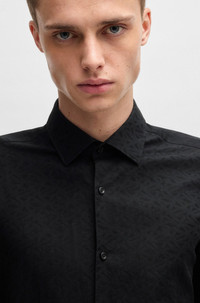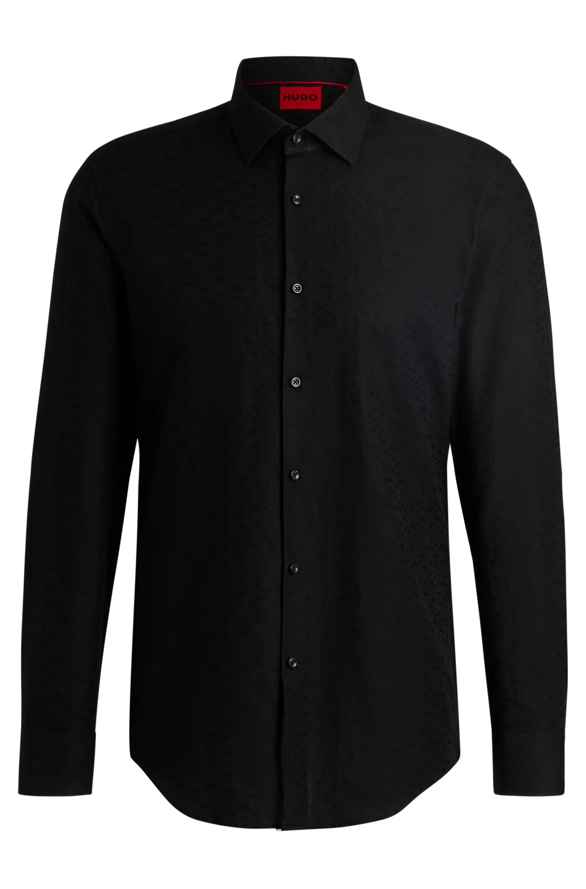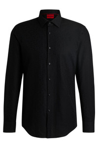 SIZE AND FIT The model wears a size EU:40 and is 6'2" tall with a, 35" chest, 27" waist and 35" hips. DETAILS Kenno - 50539757 Elevate your formal looks with this slim-fitting HUGO Menswear shirt. Woven with a jacquard pattern, this piece is made in a cotton-linen blend. Slim fit Kent collar Barrel cuffs Standard length QUALITY & CARE INSTRUCTIONS Quality: 63% Cotton, 37% Linen Do Not Bleach Do Not Dry Clean Do Not Tumble Dry Machine Wash Cold Iron Low Heat