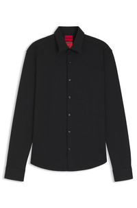 DETAILS Easy to style with its subtle raised jacquard, this slim-cut HUGO Menswear shirt is a versatile investment. Performance-stretch jersey. Slim fit Kentkragen Barrel cuffs Standard length Fit back length: 75 cm (30 inches) Ermo - 50549877 QUALITY & CARE INSTRUCTIONS Do Not Dry Clean Do Not Tumble Dry Material: 92% Polyamid, 8% Elastane Do Not Iron Do Not Bleach Machine Wash Cold Gentle