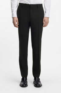 DETAILS Cut to a slim fit in performance-stretch fabric, these HUGO Menswear trousers will become a favorite foundation. Extra-soft wool-blend poplin. Pleat front Slim fit Hook and zip closure Crease Pockets bottom front: French pocket Pockets bottom back: Welt pocket Partially lined Getlin232X - 50547336 QUALITY & CARE INSTRUCTIONS Do Not Wash Reduced Dry Clean Do Not Tumble Dry Material: 51% Wool, 44% Polyester, 5% Elastane, pocketing: 65% Polyester, 35% Cotton, knee lining: 100% Viscose Do Not Bleach Iron Low Heat