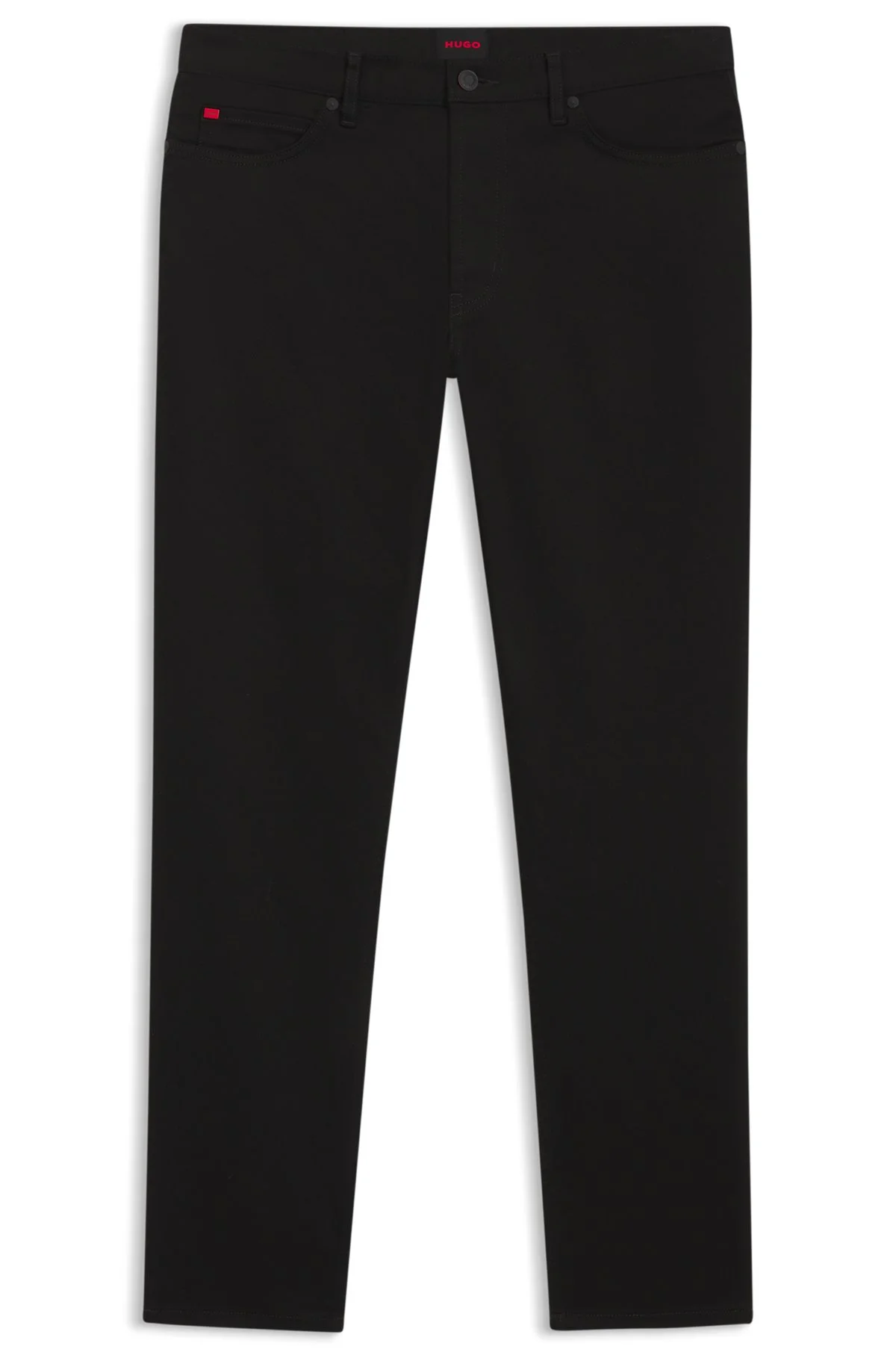 SIZE AND FIT The model wears a size 32/32 and is 6'2" tall with a, 36" chest, 28" waist and 36" hips. DETAILS Crafted in weighty stretch denim, these HUGO Menswear jeans have an intense and lasting shade of black. Cut to a modern tapered fit. Tapered fit Regular rise Button closure Pockets bottom front: Side pockets Tapered leg Pockets bottom back: Patch pocket Standard length Fit foot width: 34,0 cm (13.4 inches) HUGO 634 - 50554144 QUALITY & CARE INSTRUCTIONS Iron Medium Heat Machine Wash Cold Gentle Do Not Tumble Dry Do Not Dry Clean Do Not Bleach Material: 98% Cotton, 2% Elastane, pocketing: 100% Cotton