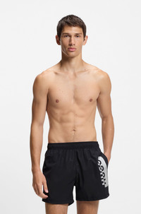 DETAILS Refresh your suitcase essentials with the silver-effect split logo of these HUGO Menswear swim shorts. Crafted in naturally quick-drying material. SILVER - 50549864 QUALITY & CARE INSTRUCTIONS Material: 100% Polyester, Lining: 100% Polyester Do Not Dry Clean Do Not Tumble Dry Do Not Iron Do Not Bleach Machine Wash Cold Gentle