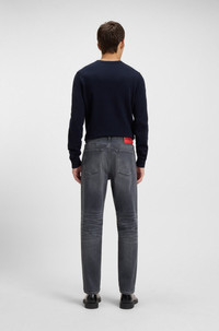 DETAILS HUGO 634 - 50547274 With a soft used wash and distressed details, these HUGO Menswear jeans are a fresh casual option. Modern tapered fit. Gray stretch denim. Tapered fit Regular rise Button closure Pockets bottom front: Side pockets Tapered leg Pockets bottom back: Patch pocket Standard length Fit foot width: 34,0 cm (13.4 inches) QUALITY & CARE INSTRUCTIONS Do Not Tumble Dry Machine Wash Cold Gentle Quality: 99% Cotton (5% recycled), 1% Elastane, pocketing: 100% Cotton Iron Medium Heat Do Not Bleach Do Not Dry Clean