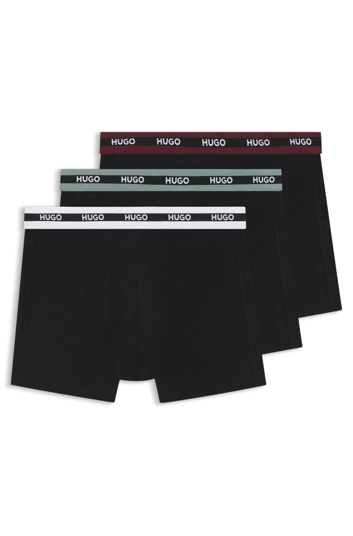 DETAILS Featuring repeat logos on the regular-rise waistband, these three pairs of HUGO Menswear boxer briefs offer breathable everyday comfort. Stretch-cotton jersey. Packaging: Box Exposed waistband Regular rise BOXERBR TRIPL PLANET - 50534694 QUALITY & CARE INSTRUCTIONS Do Not Bleach Do Not Dry Clean Tumble Dry Low Heat Material: 95% Cotton, 5% Elastane, Waistband: 58% Polyamid, 29% Polyester, 13% Elastane Machine Wash Warm Iron Low Heat