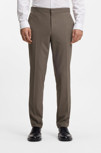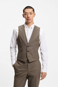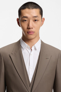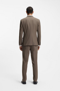 SIZE AND FIT The model wears a size 38R and is 6'2" tall with a, 34" chest, 29" waist and 35" hips. DETAILS With its slim fit and solid weave, this three-piece HUGO Menswear suit is so easy to style. Wool blend with added stretch for comfort. Slim fit Peaked lapels Fastening top: Button closure Number of buttons: 2 Welt chest pockets Pockets top: Flap pockets Inside welt pockets Button cuffs Side vent Fully lined Standard length Fit back length: 73 cm (29 inches) Hook and zip closure Pockets bottom front: Side pockets Pockets bottom back: Welt pocket Fit foot width: 38,0 cm (15.0 inches) Packaging: Dust bag Henry/Getlin242V2X - 50547343 QUALITY & CARE INSTRUCTIONS Material: 51% Wool, 44% Polyester, 5% Elastane, Lining: 100% Polyester, Sleeve lining: 100% Polyester, pocketing: 65% Polyester, 35% Cotton, knee lining: 100% Viscose Do Not Wash Reduced Dry Clean Do Not Bleach Iron Low Heat Do Not Tumble Dry