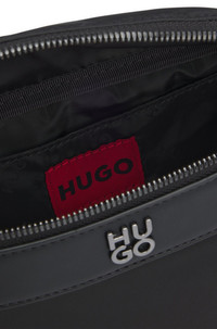 SIZE AND FIT The model wears a size pce. and is 6'2" tall with a, 35" chest, 27" waist and 35" hips. DETAILS Quantic_N_Bumbag - 50547398 Crafted in twill with a matte finish, this HUGO Menswear belt bag is great for quick-access essentials. Gunmetal trims including a stacked logo. Measurements: 32 x 15 x 7cm Metal letters Fastening top: Zip closure QUALITY & CARE INSTRUCTIONS Quality: 100% Polyester, Lining: 100% Polyester, Facing: 100% Polyamid, 70% Polyurethane (62% recycled), 30% Polyester