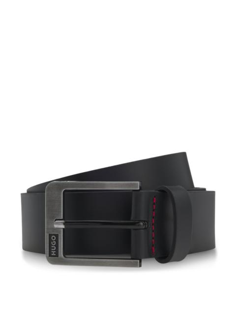 ITALIAN-LEATHER BELT WITH BRUSHED LOGO BUCKLE