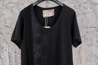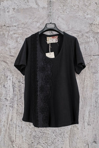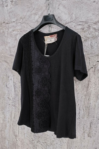 BY WALID BLACK JERSEY COTTON T-SHIRT 18-19th CENTURY LACE AND CROCHET XL,630$